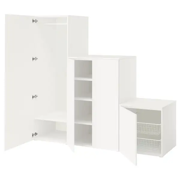 Build your PLATSA storage as you want it – high or low, under a sloping ceiling or along an entire wall. It assembles in minutes with a simple “click”. Finish with doors and interior organisers as needed.
