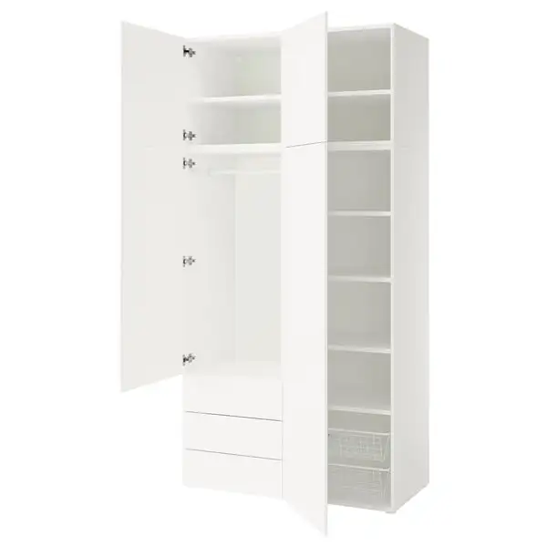 Build your PLATSA storage as you want it – high or low, under a sloping ceiling or along an entire wall. It assembles in minutes with a simple “click”. Finish with doors and interior organisers as needed.