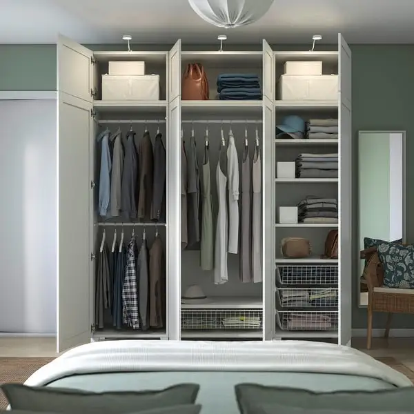 Build your PLATSA storage as you want it – high or low, under a sloping ceiling or along an entire wall. It assembles in minutes with a simple “click”. Finish with doors and interior organisers as needed.