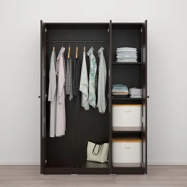 RAKKESTAD wardrobe with 3 doors, black-brown, 117x176 cm