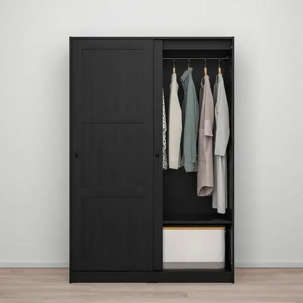 RAKKESTAD wardrobe with sliding doors, black-brown, 117x176 cm