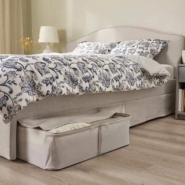 This upholstered bed frame makes your bedroom feel soft and warm. The curved headboard and piped edges create a classic look – and the entire cover is removable and machine washable.