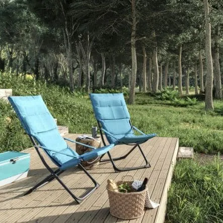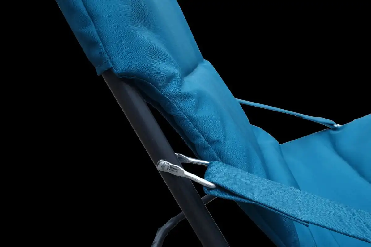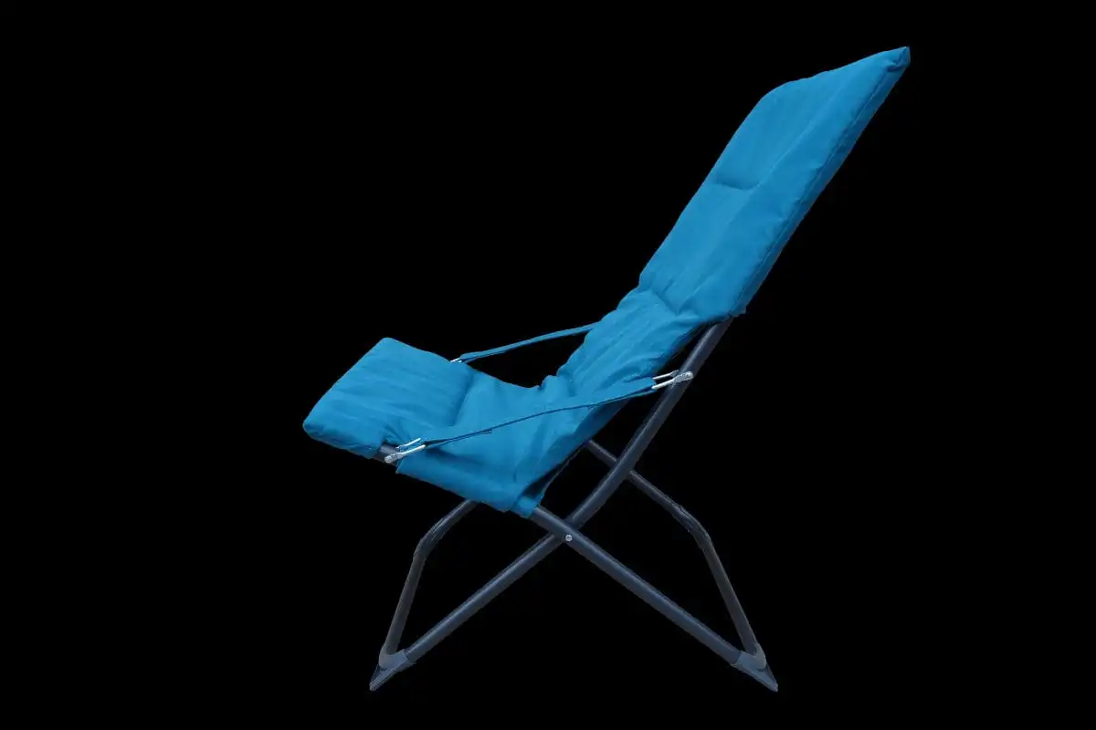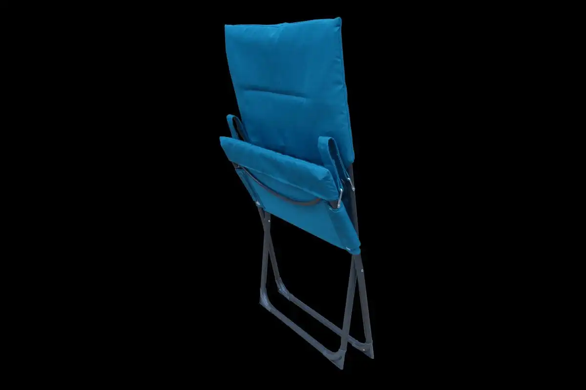 Light blue color steel folding cushionless garden chairIdeal for outdoor loungingWide, upholstered seat Lightweight and foldable for maximum space-saving when not in useEasy to transport, the frame is powder-coated steel for outdoor durability and the seat is sponge-padded polycoton