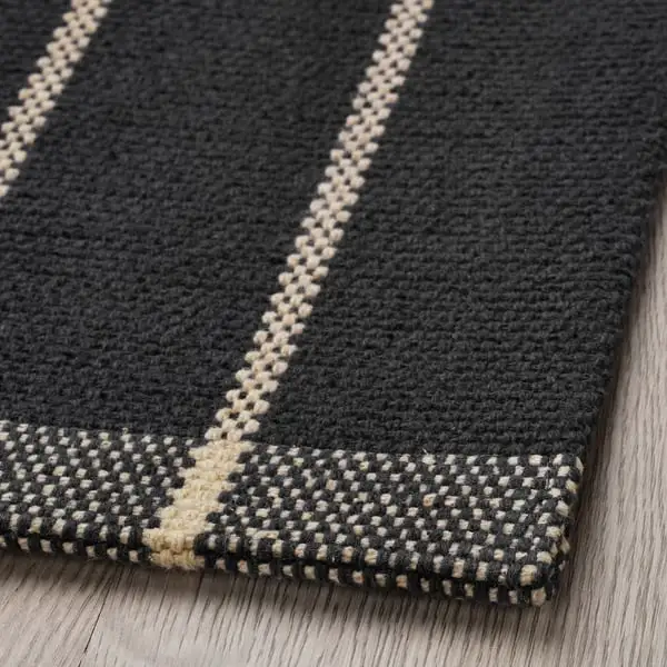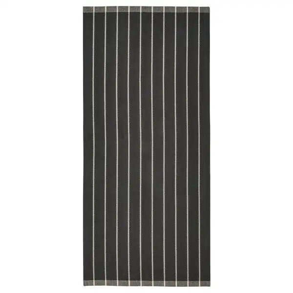Foot-friendly cotton rug in grey with off-white stripe pattern. The rug is flatwoven and ideally sized for hallways and kitchens. Easy to vacuum and machine-washable so it will keep its fresh appearance.