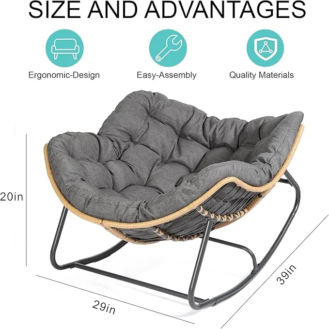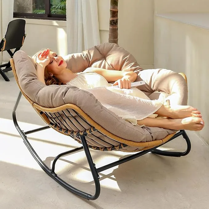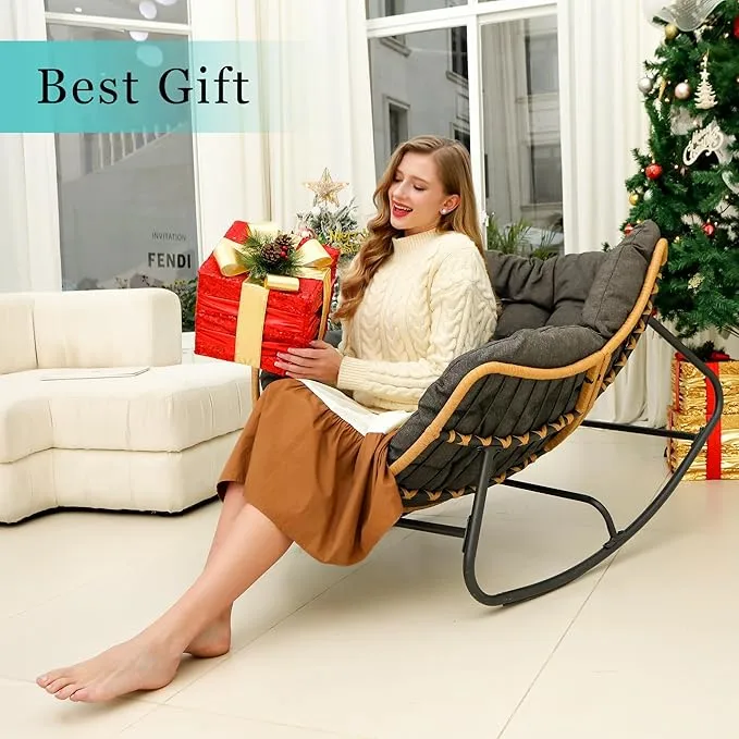 【Sturdy Construction】The oversized rocking chair is mainly made of high-quality alloy tubes and woven rattan with a load capacity of up to 450 LBS. Maximize your safety and accompany you for a long time.