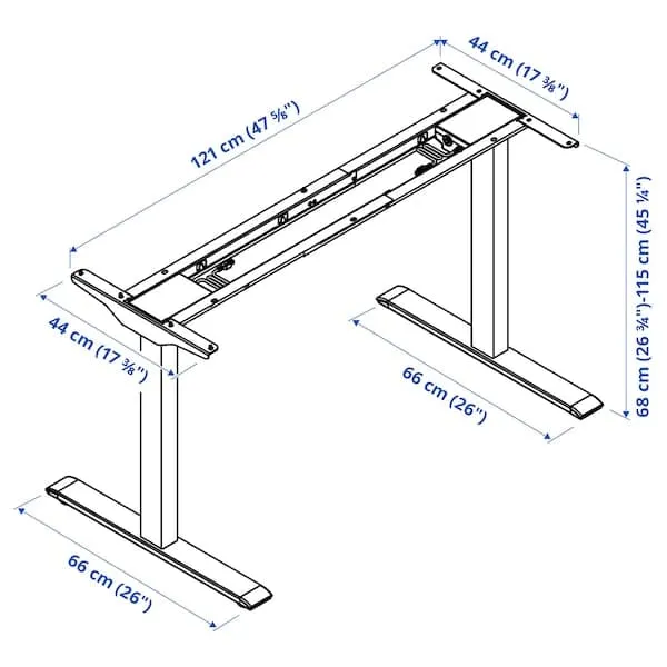 RODULF Adjustable base for table top - white 140x80 cm. 10 years warranty. Find out the terms and conditions in the warranty booklet. You can easily adjust the height with one hand. The desk is also stable on uneven floors thanks to the adjustable feet.