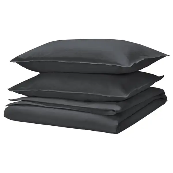 Pre-washed and wrinkle-chic! RUNDHAGTORN duvet cover set in anthracite is made with a blend of durable linen and comfy cotton that breathes and absorbs moisture – and the fabric gets softer with each wash.