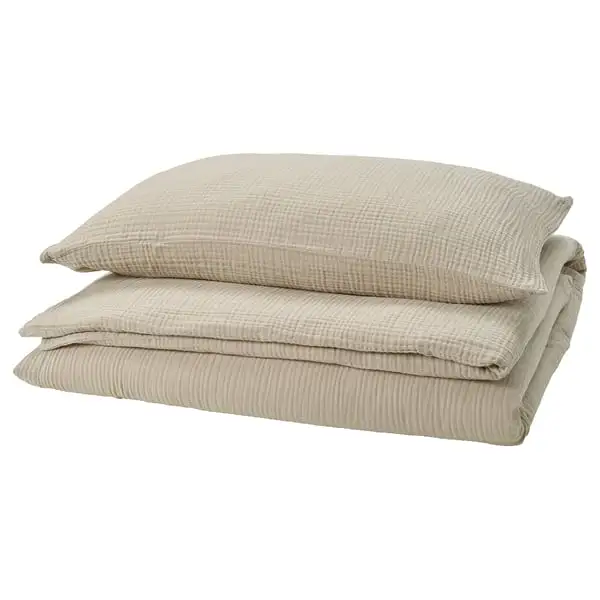 SCHERSMIN duvet cover set in cosy and airy muslin fabric has you sleeping under a cloud of softness. Made of breathable, 100% organic cotton certified by the Global Organic Textile Standard (GOTS).