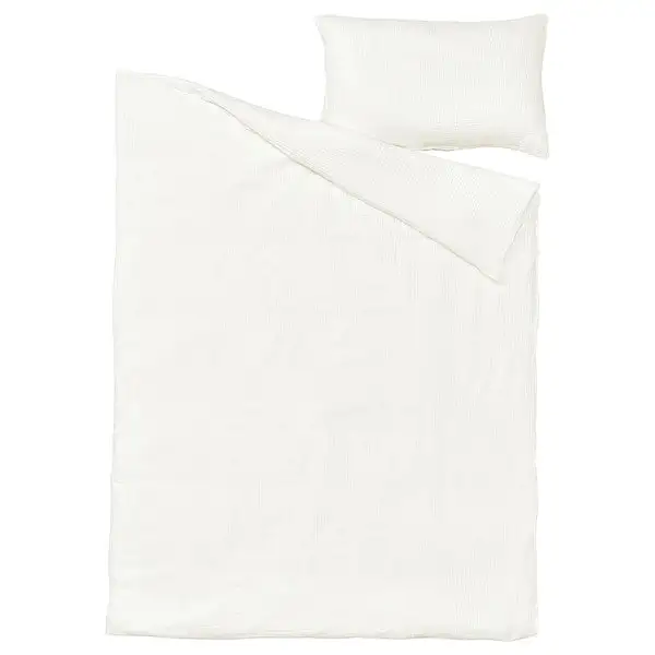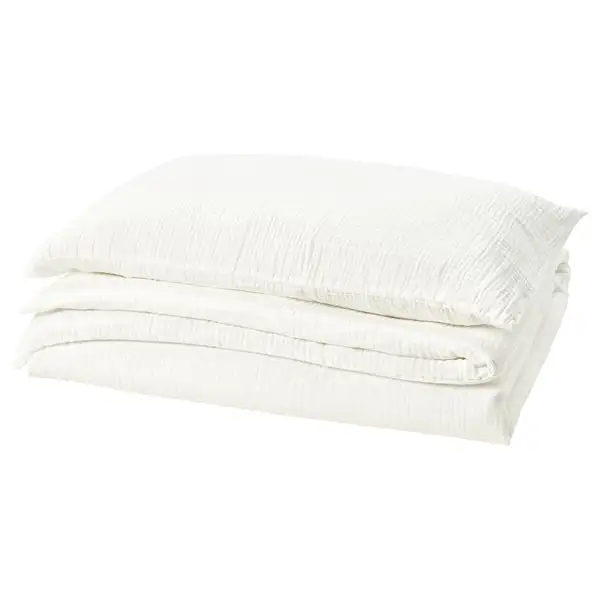 SCHERSMIN duvet cover set in cosy and airy muslin fabric has you sleeping under a cloud of softness. Made of breathable, 100% organic cotton certified by the Global Organic Textile Standard (GOTS).