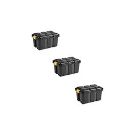 SET 3 BOXONE WITH LID 50LT BLACKIdeal for boxes and garages. With lid, side latches and wheels Durable and suitable for outdoor use