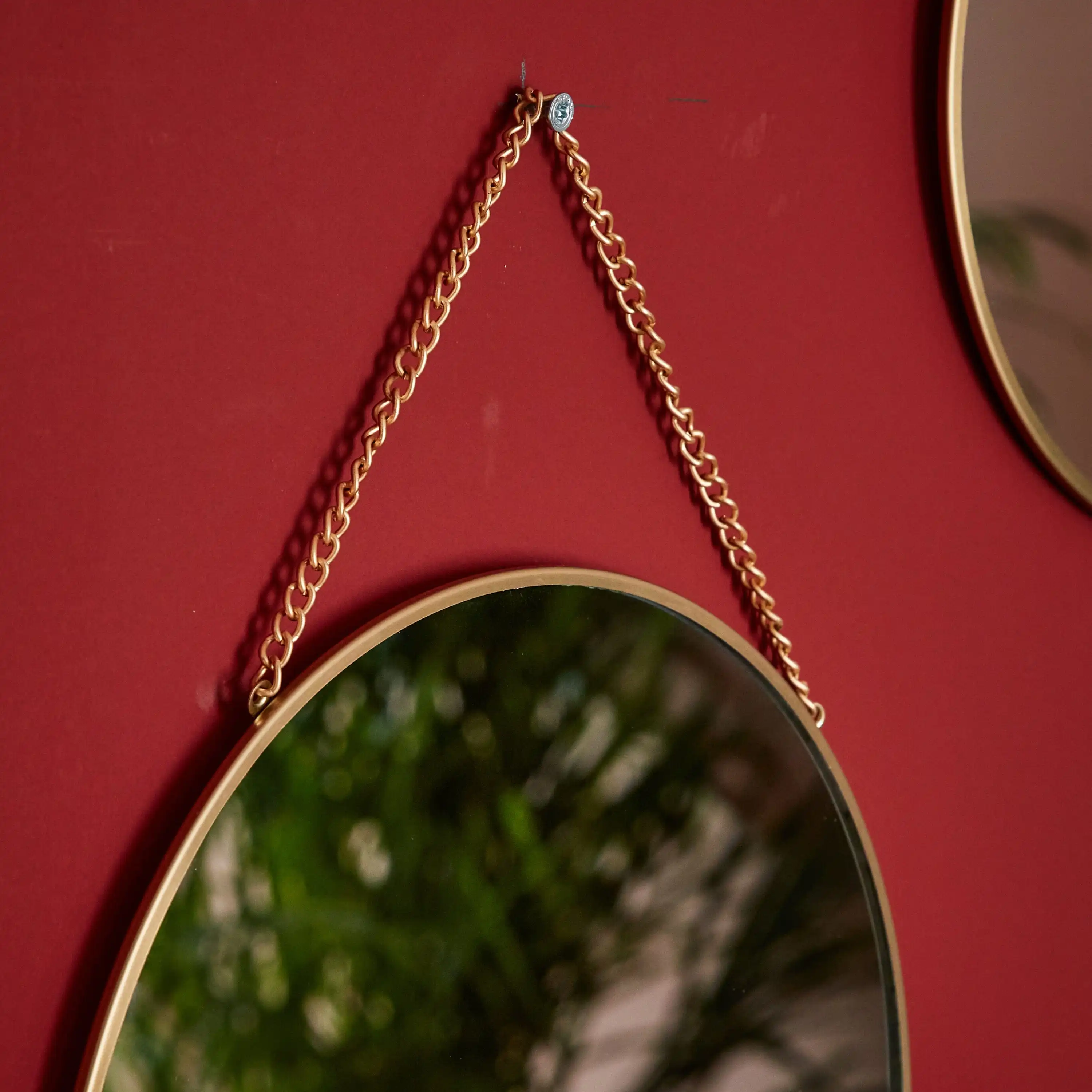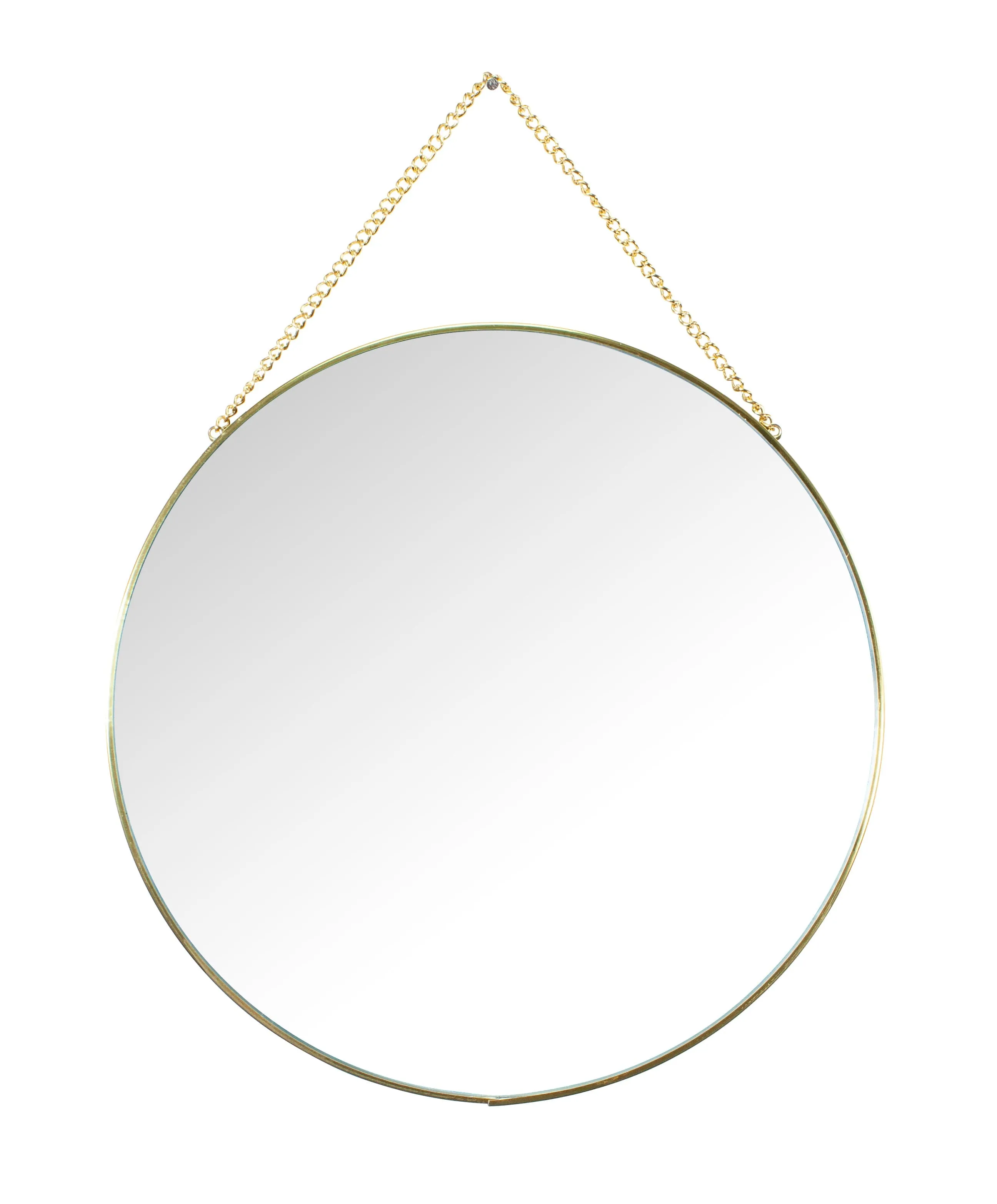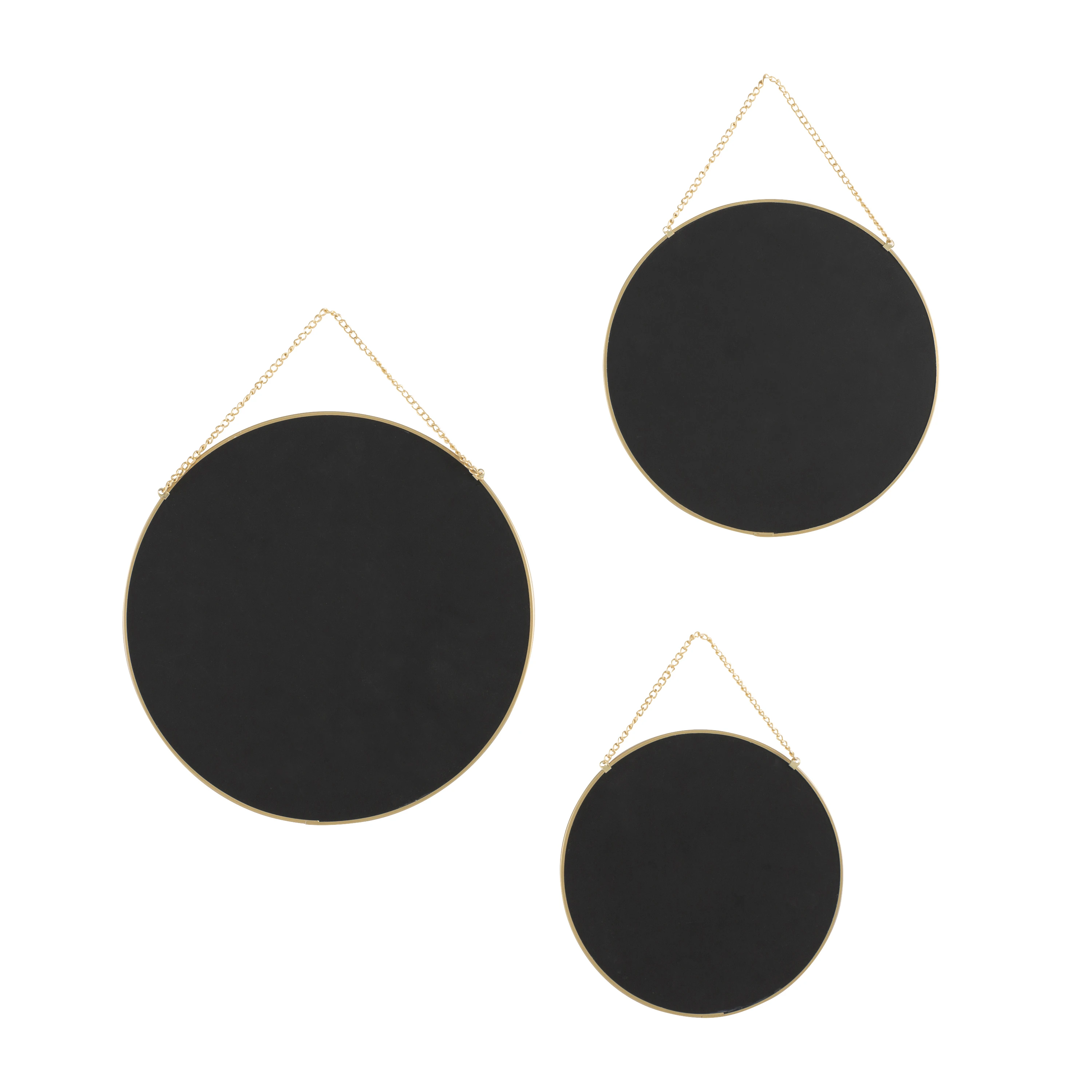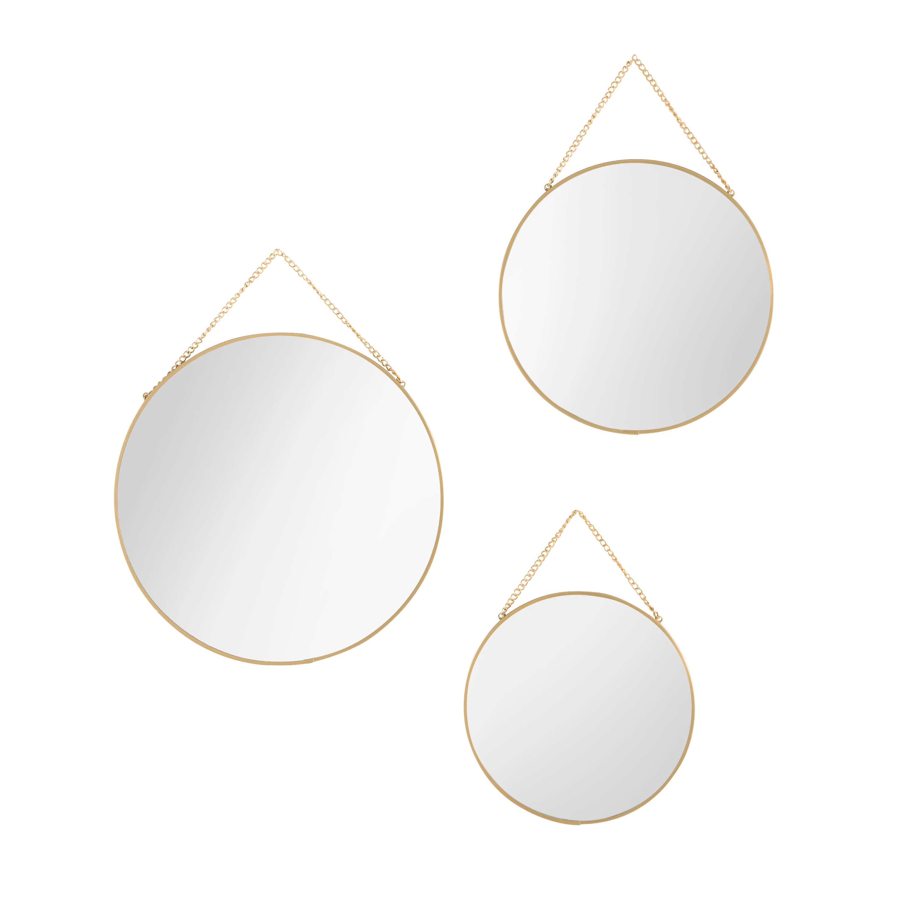 Set of 3 round gold metal mirrors Ideal for decorating your walls in an original way Hang them easily thanks to the gold metal fastening chain