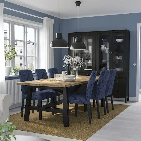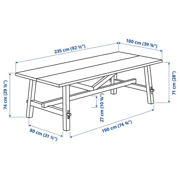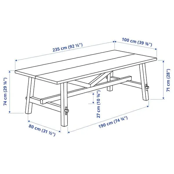 SKOGSTA dining table, acacia/nero, 235x100 cm
