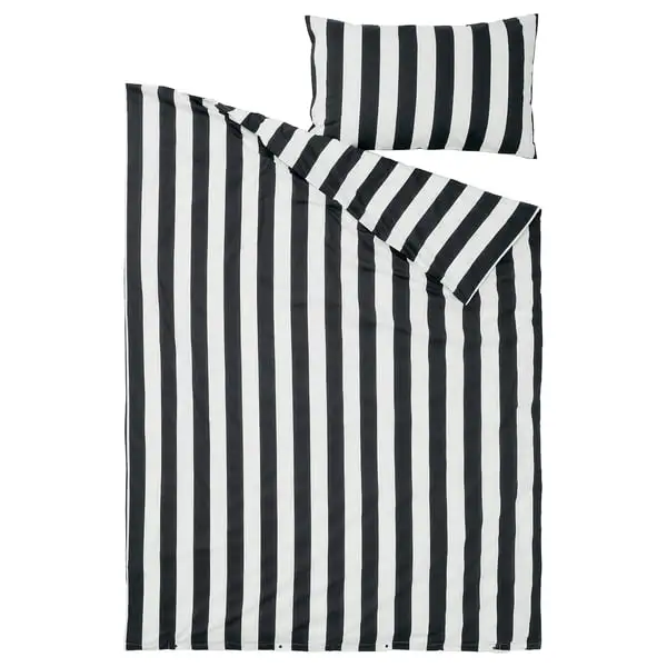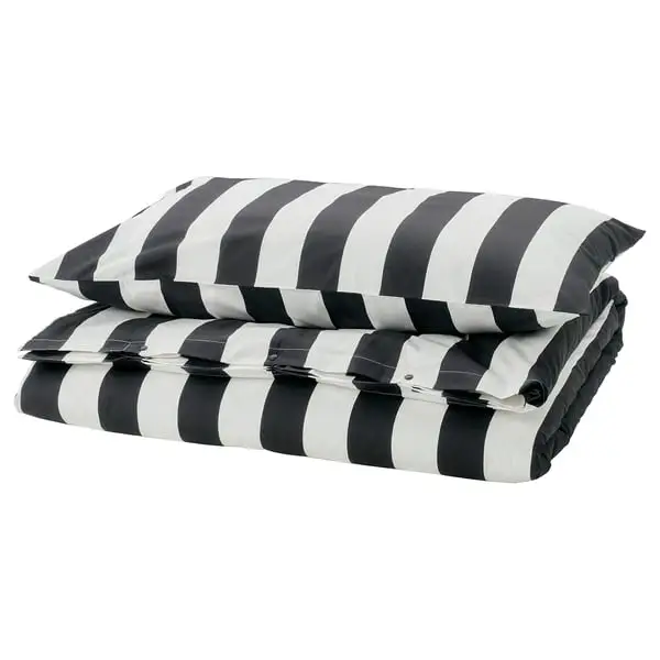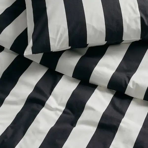 Duvet cover set in classic, iconic stripes with a modern look. The fabric is percale-woven, which makes it very durable, crisp and soft to sleep in. The cotton/viscose blend breathes and absorbs moisture.
