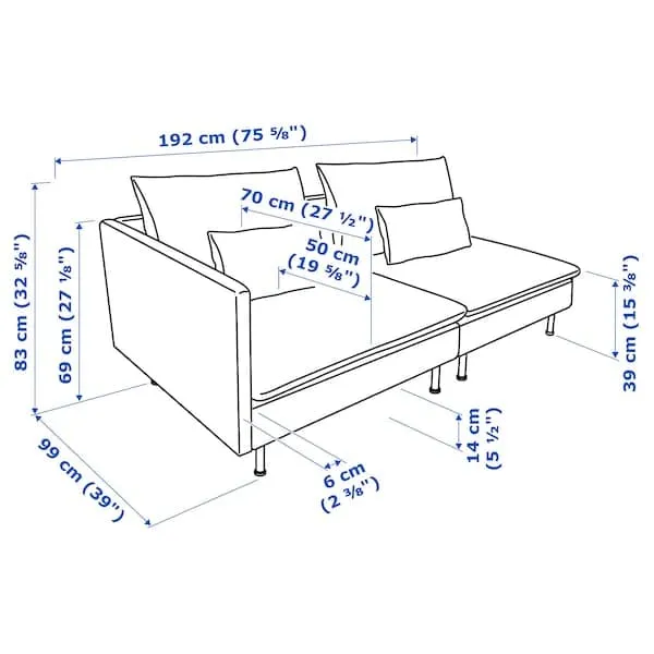 If you like the stylish airy look, you have to try the deep generous seats. Create your own personal combination of SÖDERHAMN sofa, then sit down and relax – by yourself or together with the whole family.