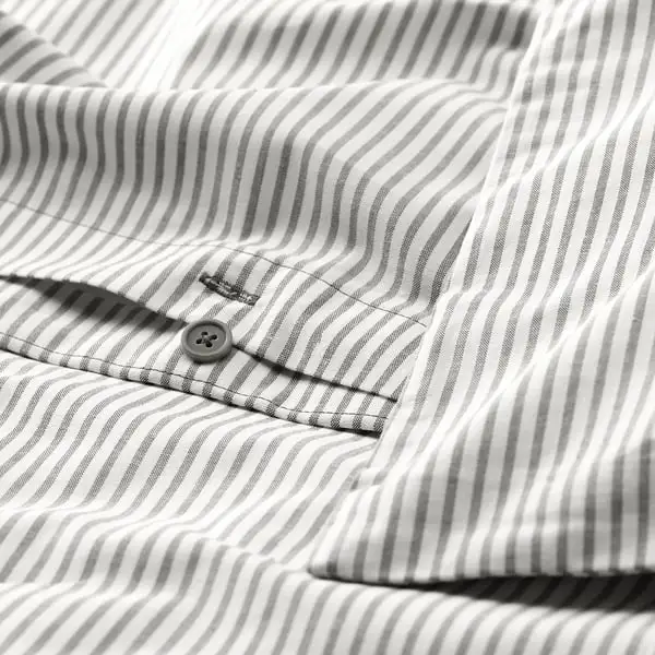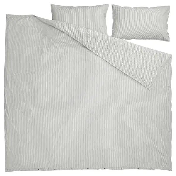 SOLFIBBLA duvet cover set is made from soft 100% cotton with clear, timeless grey and white yarn-dyed stripes. The thicker yarn adds a cosy, handcrafted vibe with a hint of vintage charm to your bedroom.