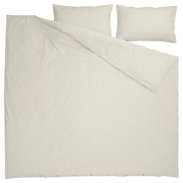 SOLFIBBLA duvet cover set is made from soft 100% cotton with clear, timeless beige and white yarn-dyed stripes. The thicker yarn adds a cosy, handcrafted vibe with a hint of vintage charm to your bedroom.