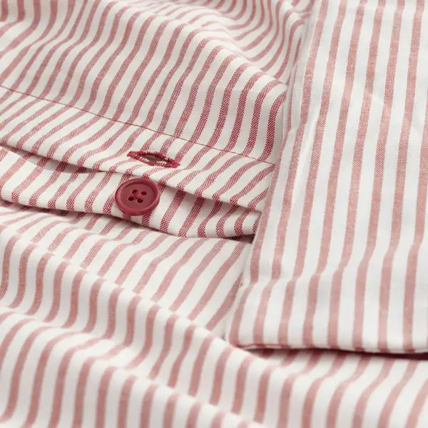 SOLFIBBLA duvet cover set is made from soft 100% cotton with clear, timeless red and white yarn-dyed stripes. The thicker yarn adds a cosy, handcrafted vibe with a hint of vintage charm to your bedroom.