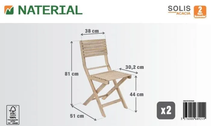 SOLIS NATIALAL - Set of 2 folding Chairs - wood Acacia 38x51xh81