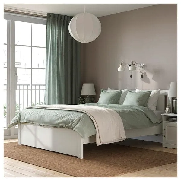 A sturdy bed frame with soft, profile edges and high legs. A classic shape that will last for many years. Complete with SONGESAND bed storage boxes to store extra bedding without taking up more space.