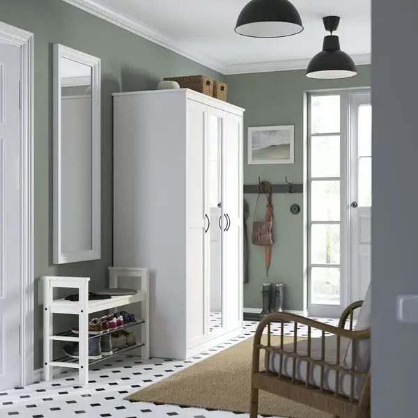 The classic design with panelled doors never goes out of style. Are you on your way? Use the full-length mirror so you can see your outfit from top to toe. Psst! Please attach to the wall.