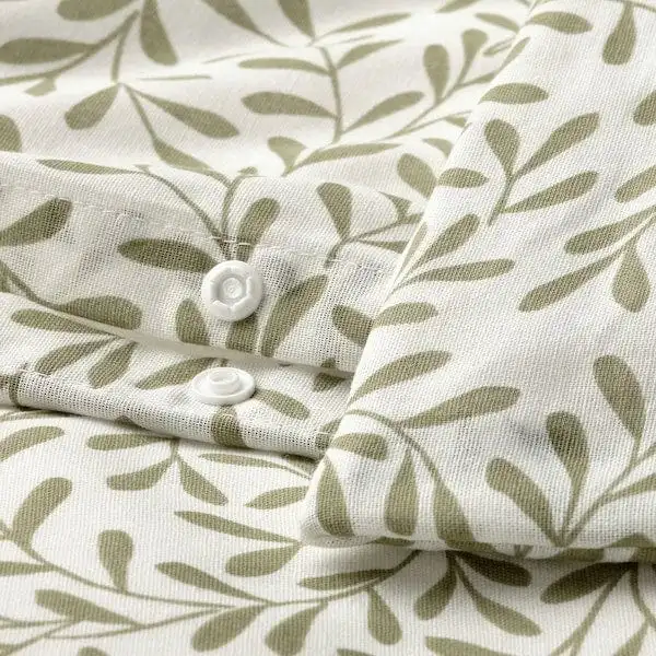 The leaf pattern brings a botanical vibe to your sanctuary. This set is made from a blend of recycled polyester and natural cotton giving you a crease-free fabric that breathes and absorbs moisture.
