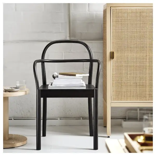 Dining chair with modern Scandinavian appeal, featuring a solid beech backrest expertly bent by steam. Beautifully suited for the dining table or as an elegant accent in any room.