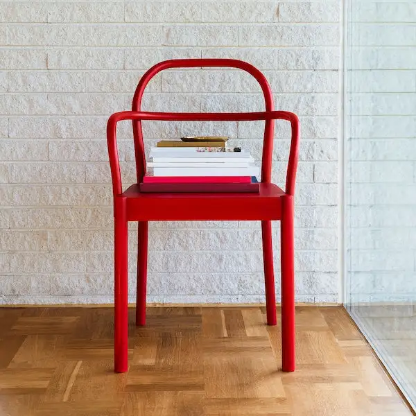 Dining chair with modern Scandinavian appeal, featuring a solid beech backrest expertly bent by steam. Beautifully suited for the dining table or as an elegant accent in any room.