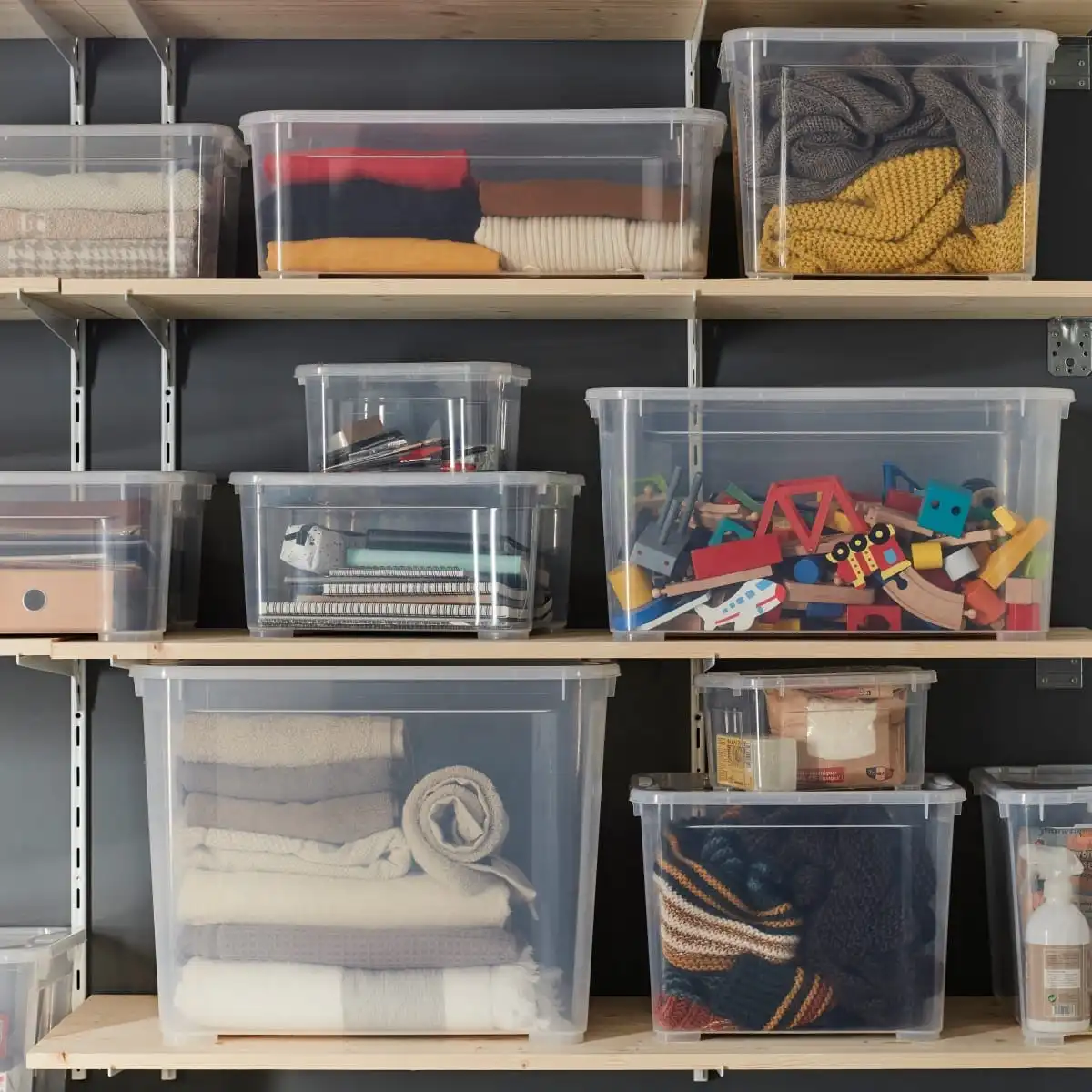 Transparent T Box M container 55.5 x 39 x 19 cm for clothes, bindersfit for food contactstackable and modular with other sizes in the series