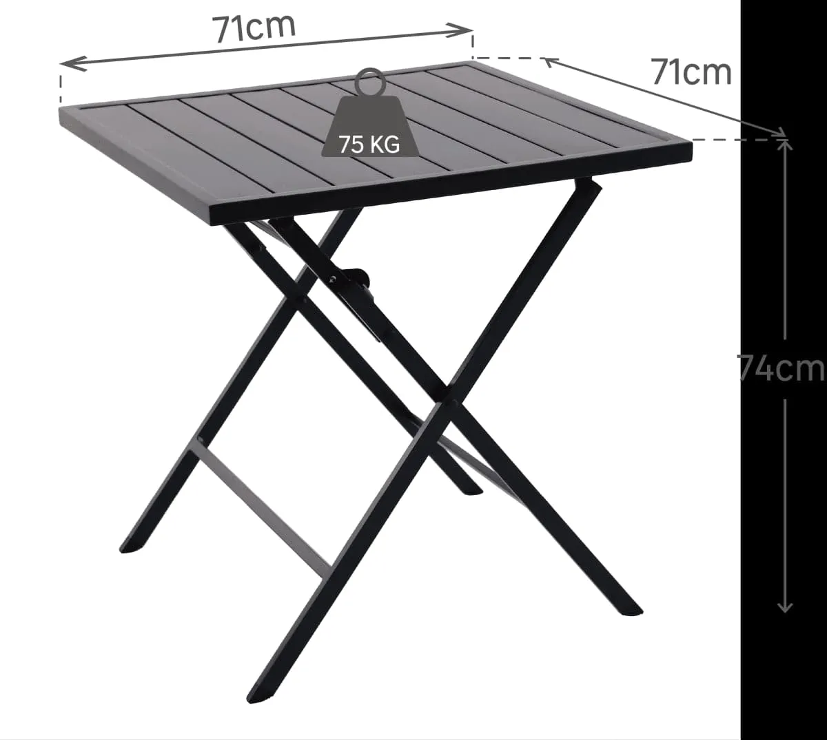 XARA NATERIAL aluminum garden table with charcoal gray aluminum top for 2 people 71x74cmFor 2 people, suitable for small and medium-sized environments such as balconies, verandas, terraces, gazebos and particular garden cornersFoldable, to ensure maximum space saving when not in useEasy to clean