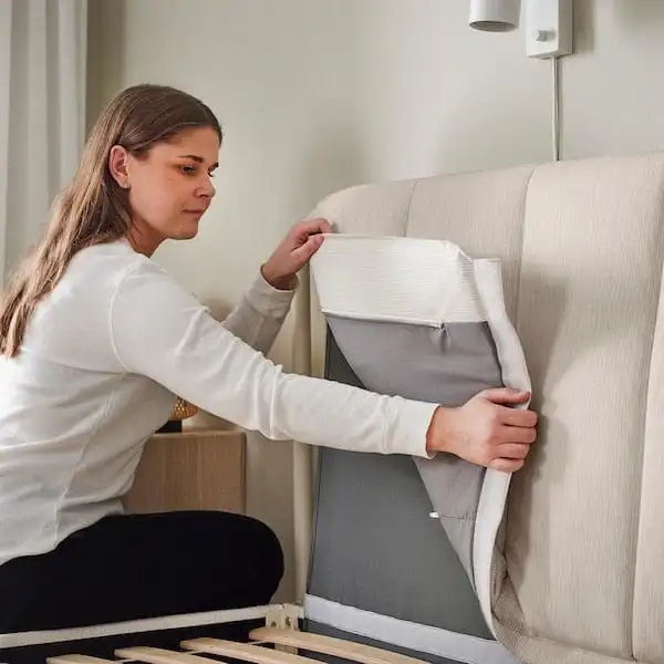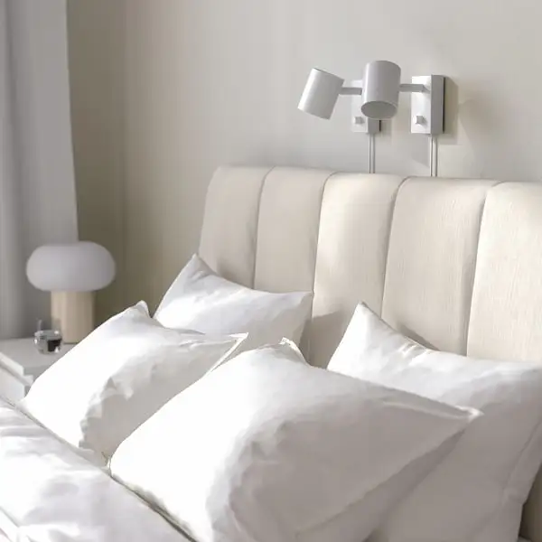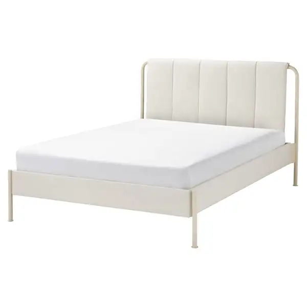 Clean lines, colour-coordinated upholstery, metal parts and a soft, comfy headboard. TÄLLÅSEN has many well-designed details, adding a modern look to your bedroom that combines easily with other furniture.