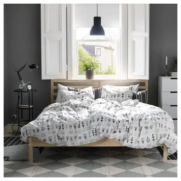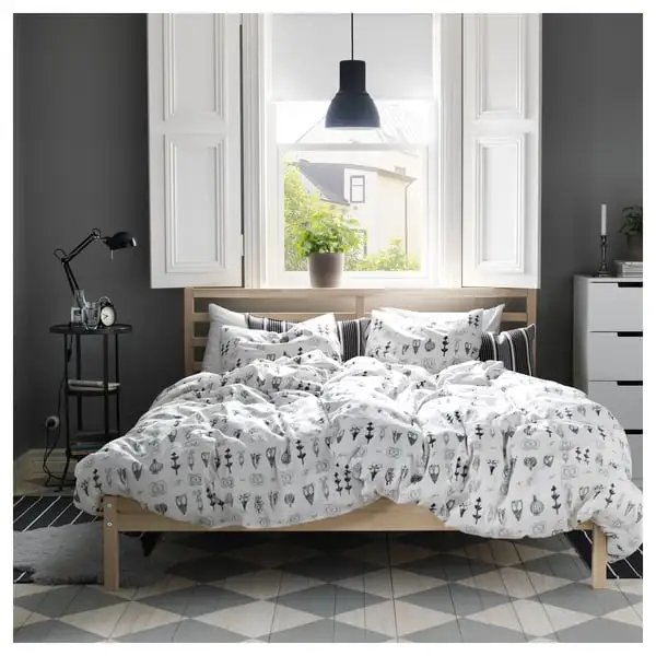 TARVA bed frame is a modern example of Scandinavian furniture tradition – a simple design and untreated wood. A timeless expression mixes nicely with a variety of other styles and furniture.