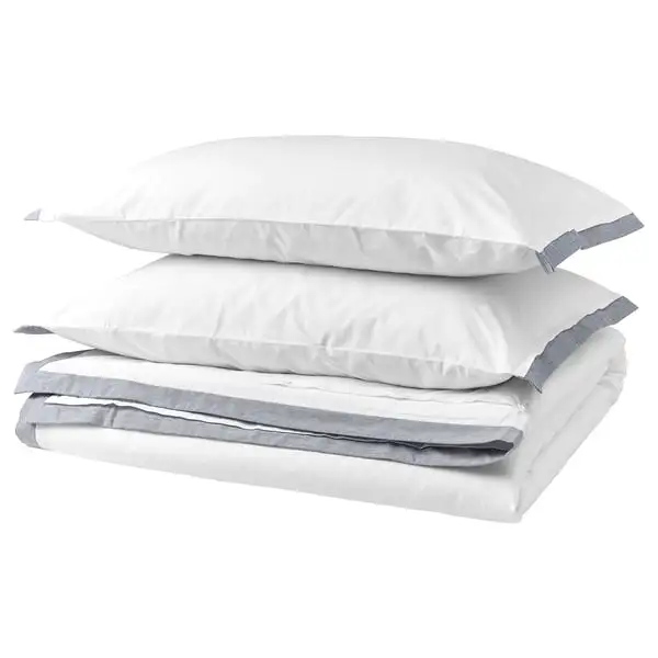 Made of 100% organic cotton certified by GOTS. Float off to sleep surrounded by the softness of TÅTELSMYGARE duvet cover set. A timeless look in classic white with a decorative double sham in blue.
