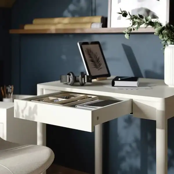 This small white desk with a soft-closing drawer is great for meals, studies or hobbies. Classic design meets a graceful finish in the TONSTAD series in off-white, giving the furniture a solid sense of quality.