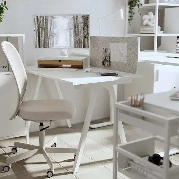 Small desk that fits in every space – at your office or at home. The A shape of the legs is a smart design feature that allows you to use all the space under the desk for your office chair and storage.