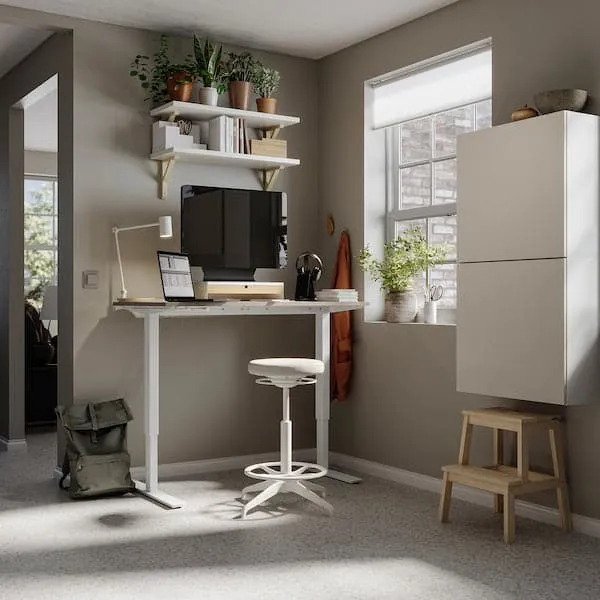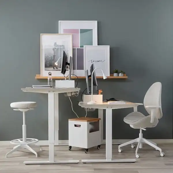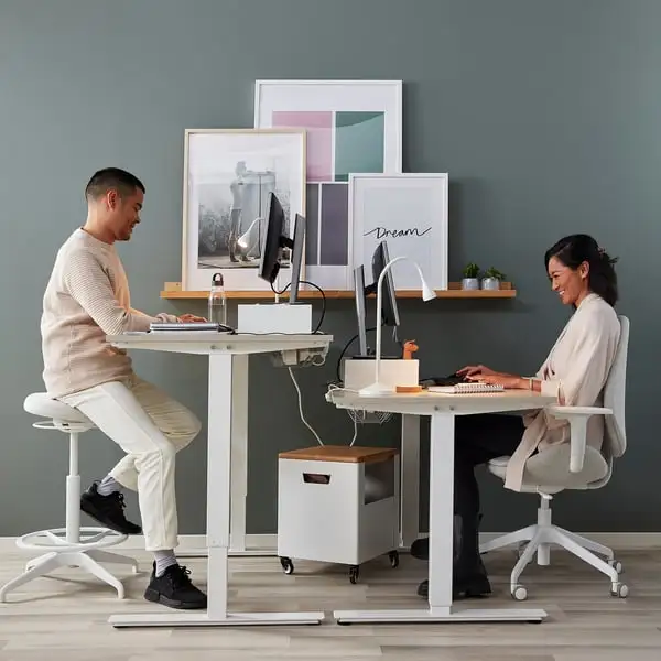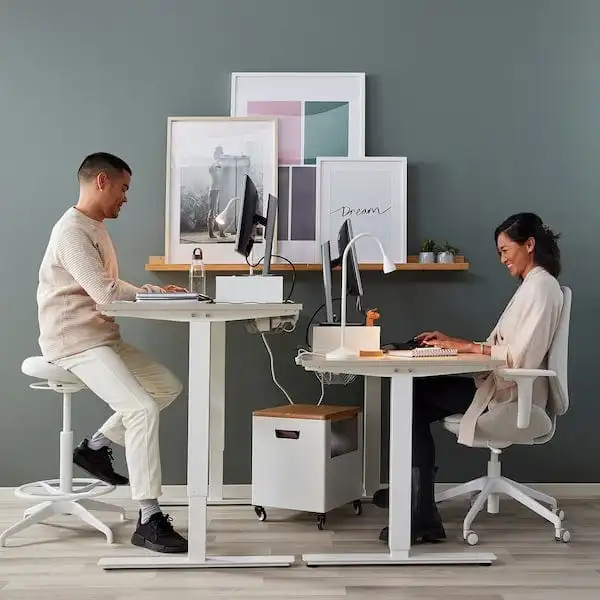 Changing positions from sitting to standing is good for you, and the crank handle allows you to work your arms while adjusting the height. Moving your body makes you both feel and work better.