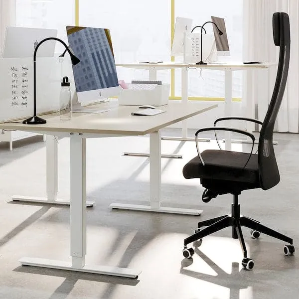 Changing positions from sitting to standing is good for you, and the crank handle allows you to work your arms while adjusting the height. Moving your body makes you both feel and work better.
