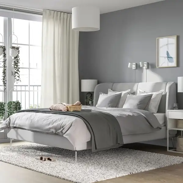 TUFJORD will make you long for bedtime. The headboard’s embracing curves help you to unwind, and make lazy mornings spent in bed even cosier. And the soft, textured upholstery enhances the comfy feel.