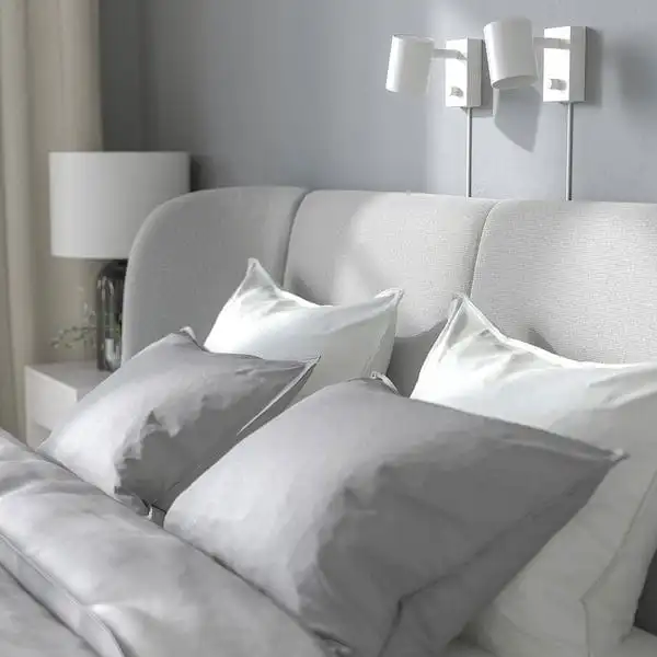 TUFJORD will make you long for bedtime. The headboard’s embracing curves help you to unwind, and make lazy mornings spent in bed even cosier. And the soft, textured upholstery enhances the comfy feel.