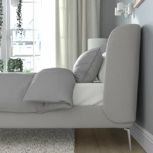 TUFJORD will make you long for bedtime. The headboard’s embracing curves help you to unwind, and make lazy mornings spent in bed even cosier. And the soft, textured upholstery enhances the comfy feel.
