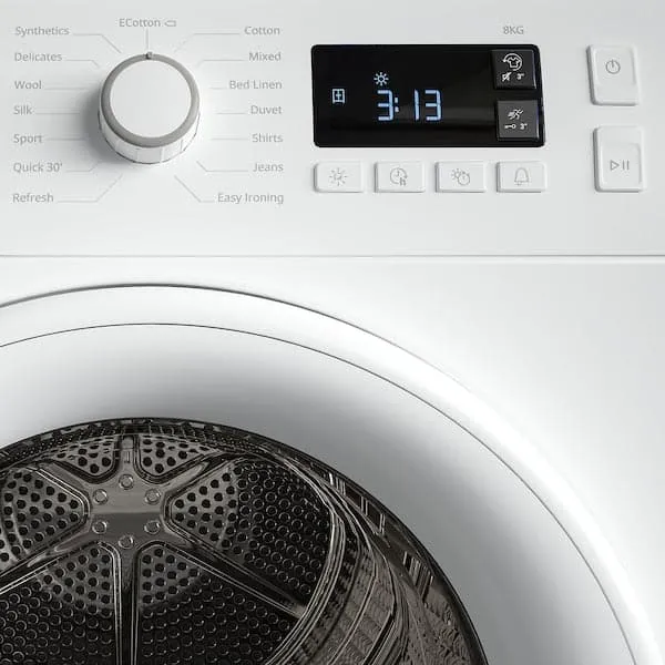 This freestanding condenser dryer offers all the functions you are looking for in a simple and straightforward design. Large 8 kg family-friendly load capacity to meet your everyday laundry needs.