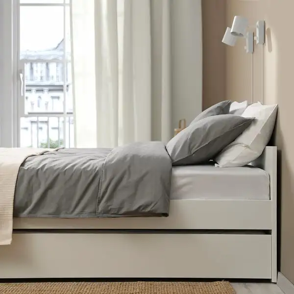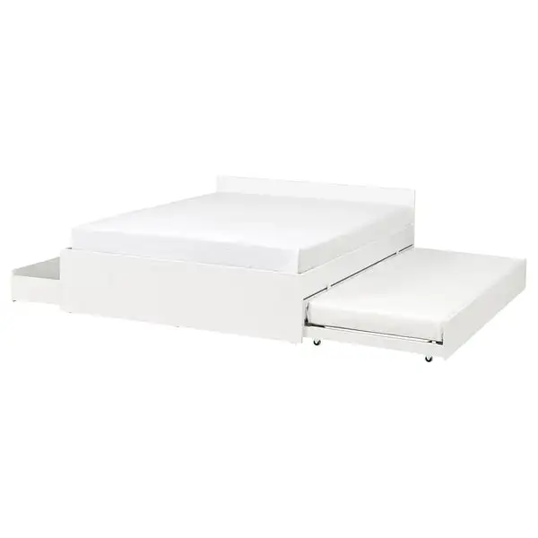 Simple yet versatile bed frame with a trundle bed and storage boxes for all those bedroom necessities. A smart solution that matches the other pieces of furniture in the VIHALS series.