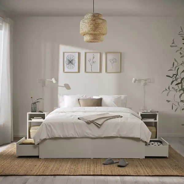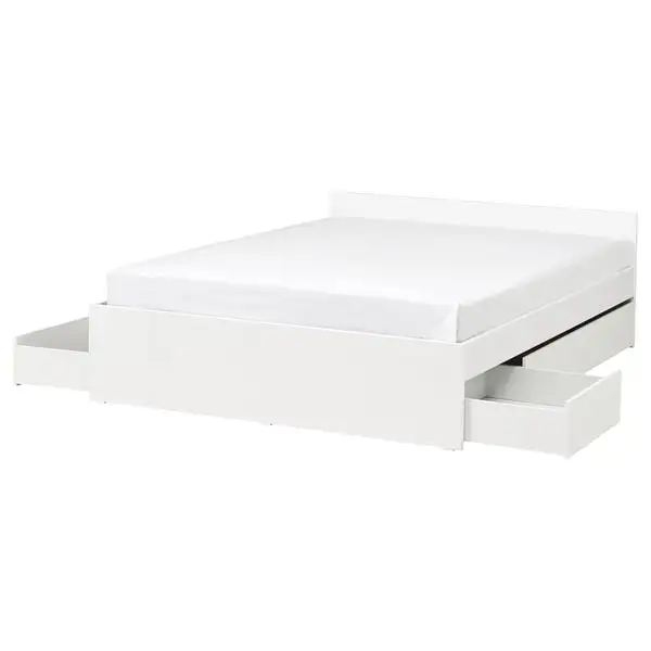 Simple yet versatile bed frame with 4 storage boxes for all those bedroom necessities. A smart solution that matches the other pieces of furniture in the VIHALS series.