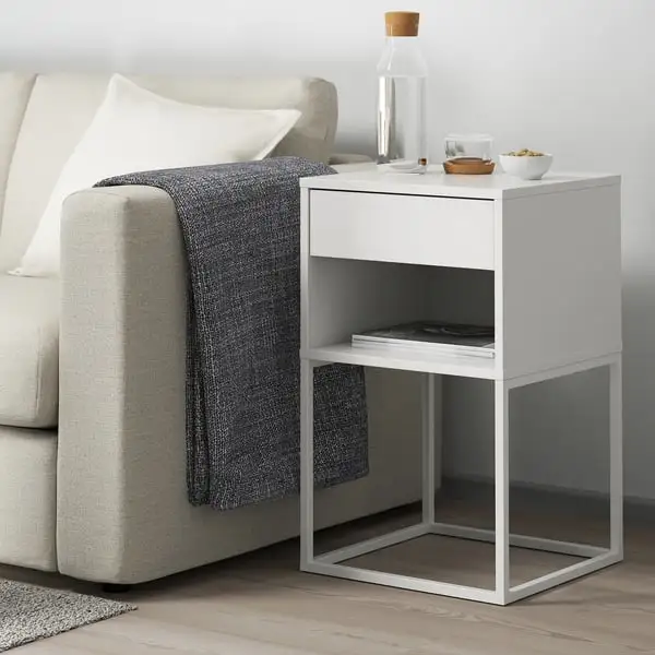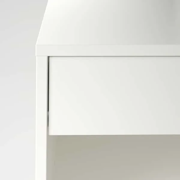 A clean, simple design that fits nicely next to high beds. If a good book has kept you up late, you can quietly tuck it away in one of the soft-closing drawers without waking anyone.