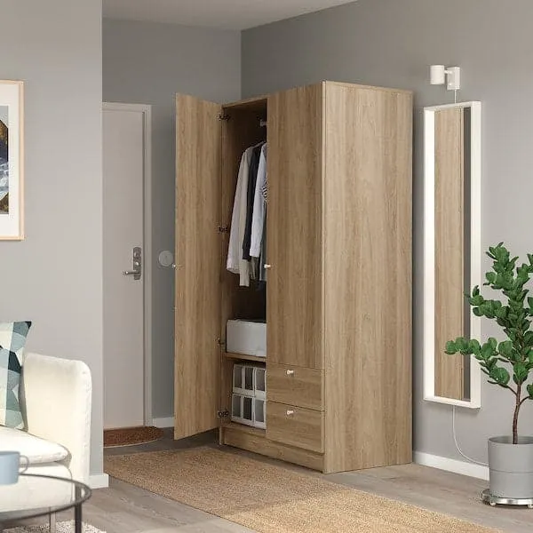 VILHATTEN wardrobe with 2 doors and 2 drawers, oak effect, 98x57x190 cm