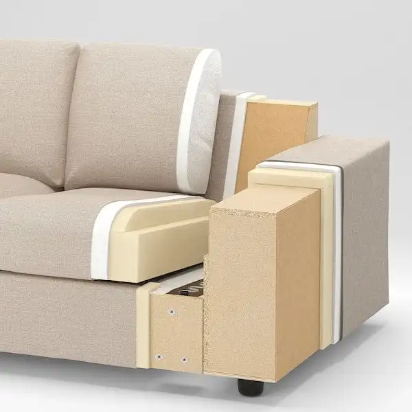 VIMLE corner sofa, 5-seat w chaise longue, with wide armrests/Hillared beige, 15x68x98 cm