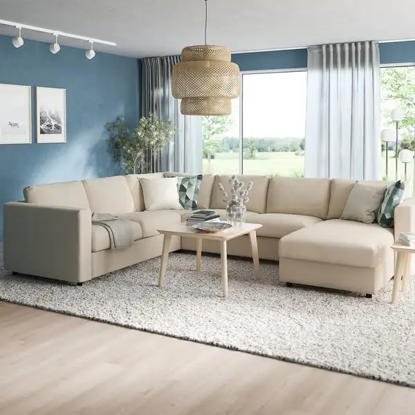 VIMLE corner sofa, 5-seat, with chaise longue/Hallarp beige, 15x68x98 cm