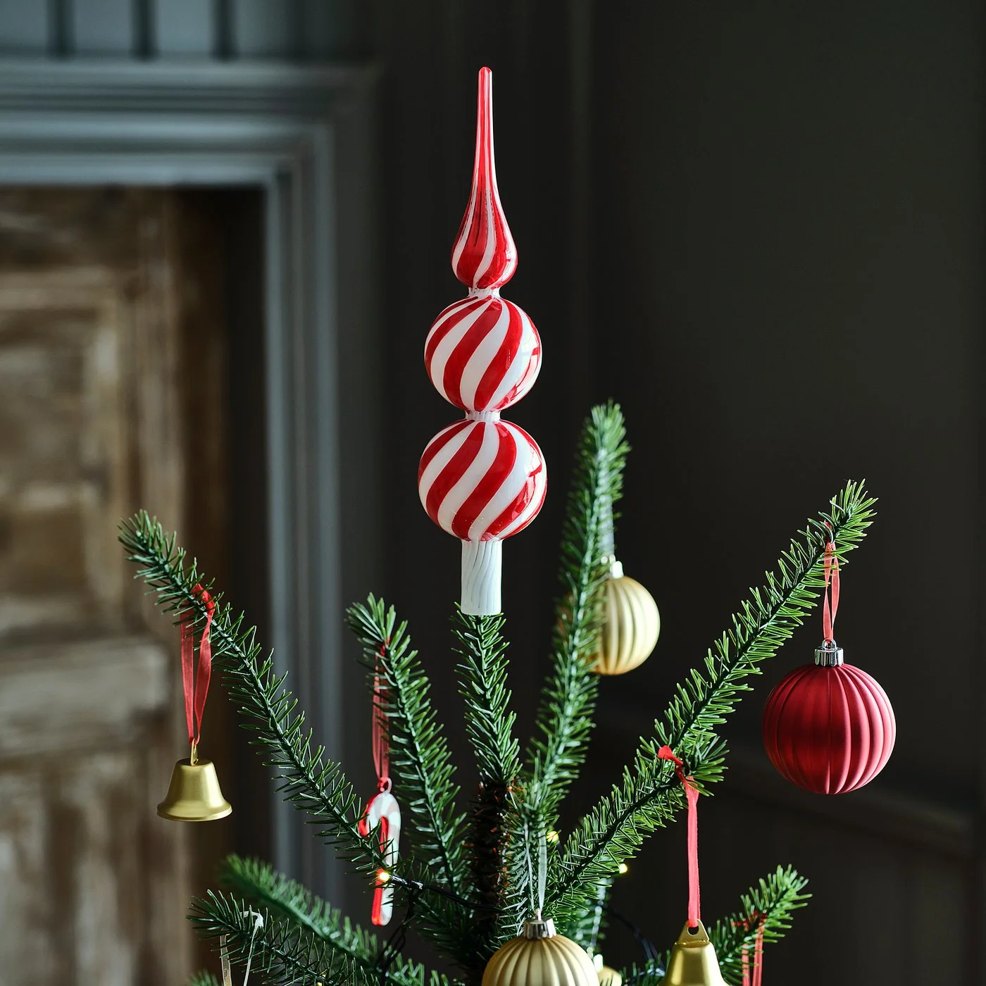 Switch the star on top of your tree with this glass spire inspired by candy canes! It's elegant and colourfully playful, and just unexpected enough to be a talking point during your Christmas celebrations.