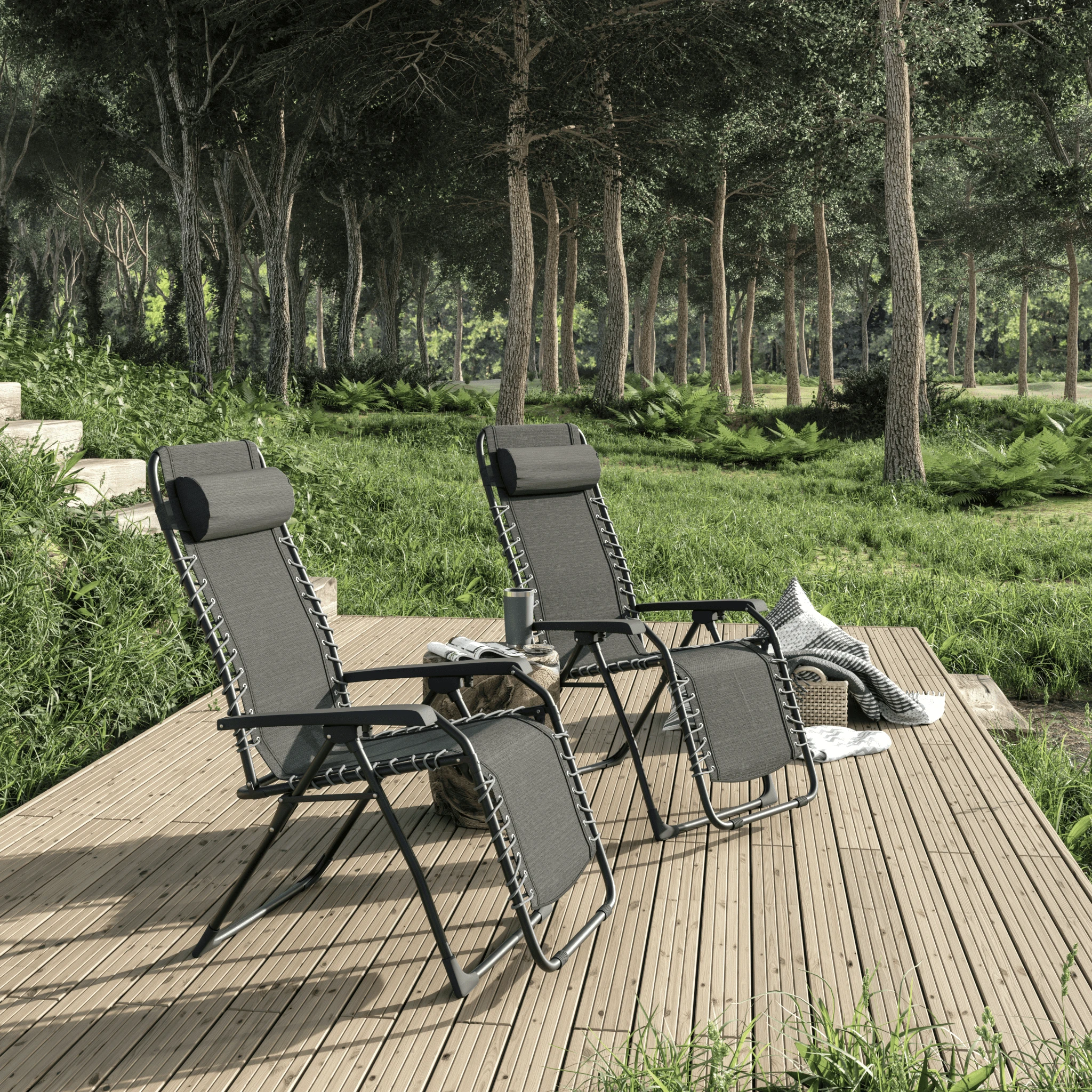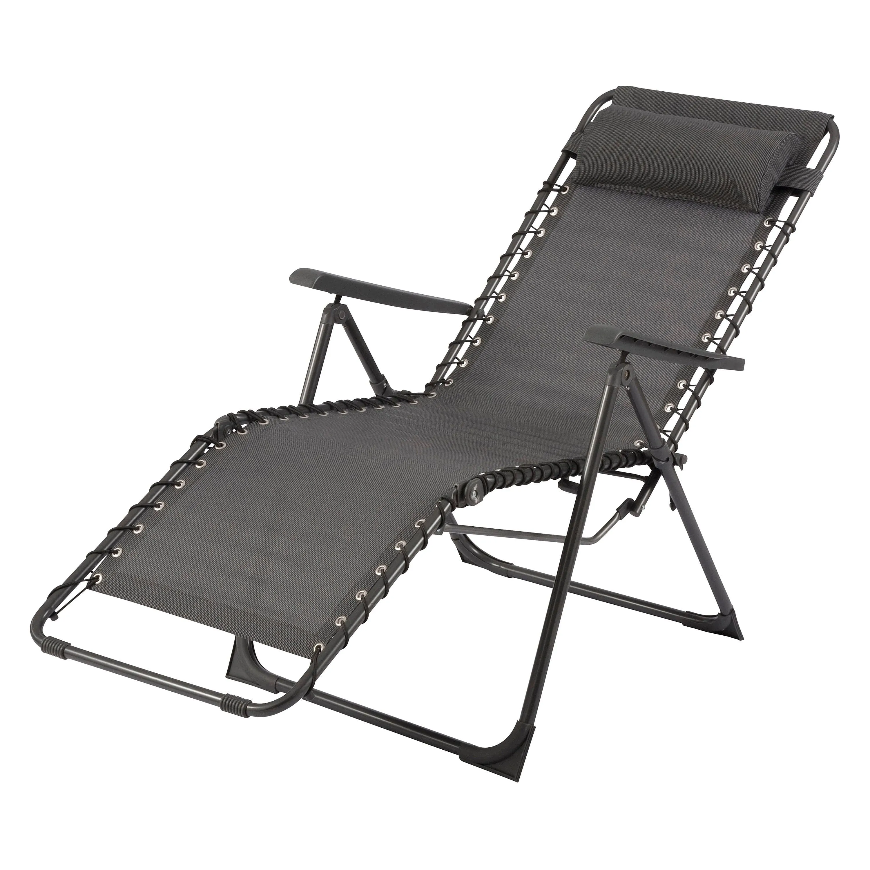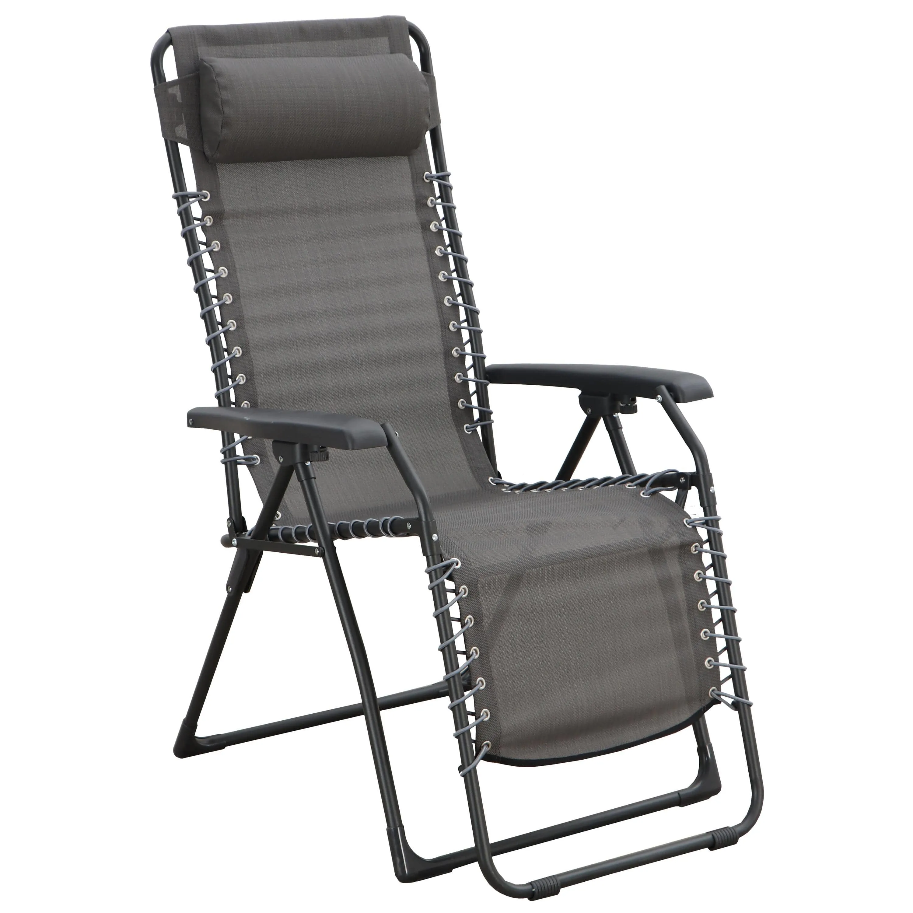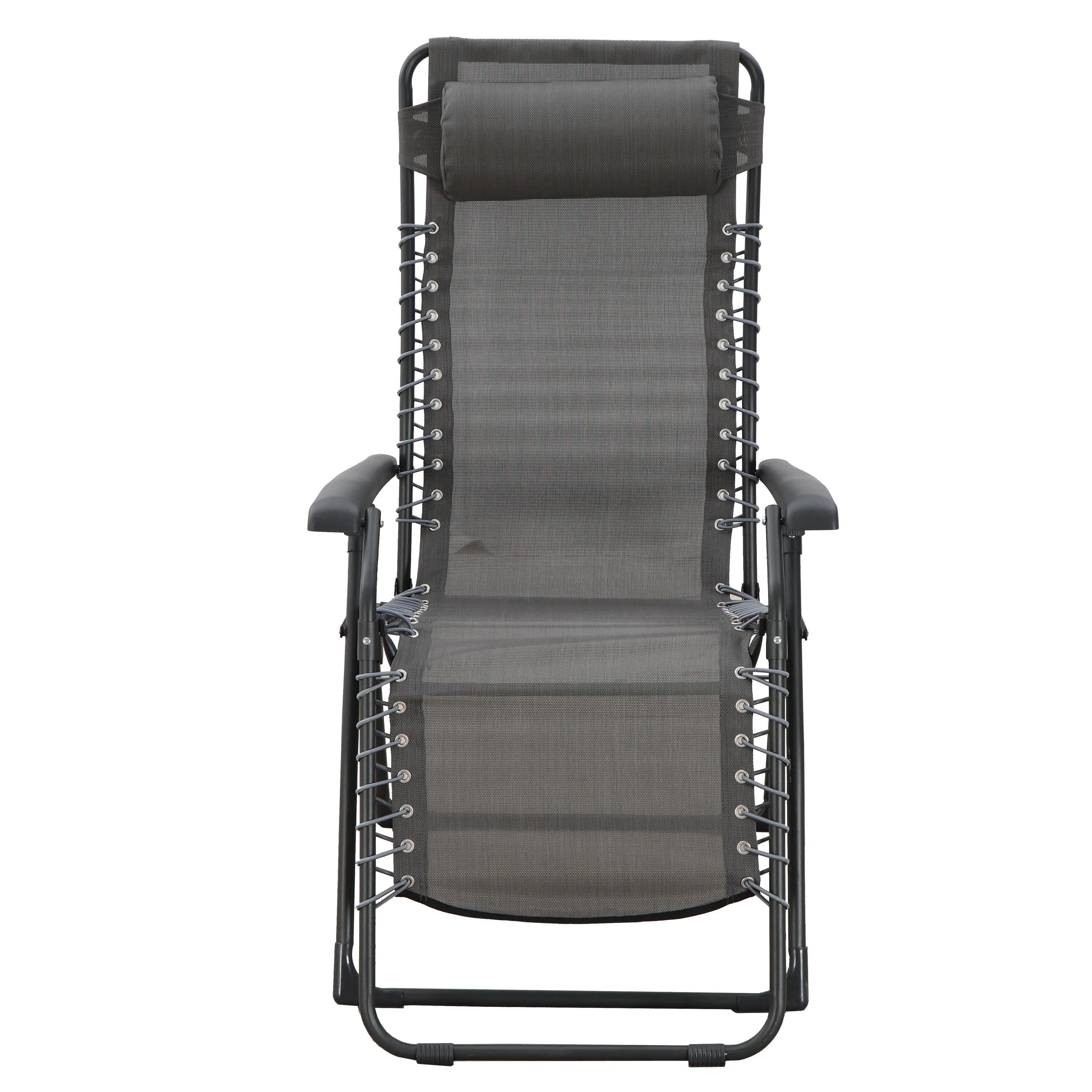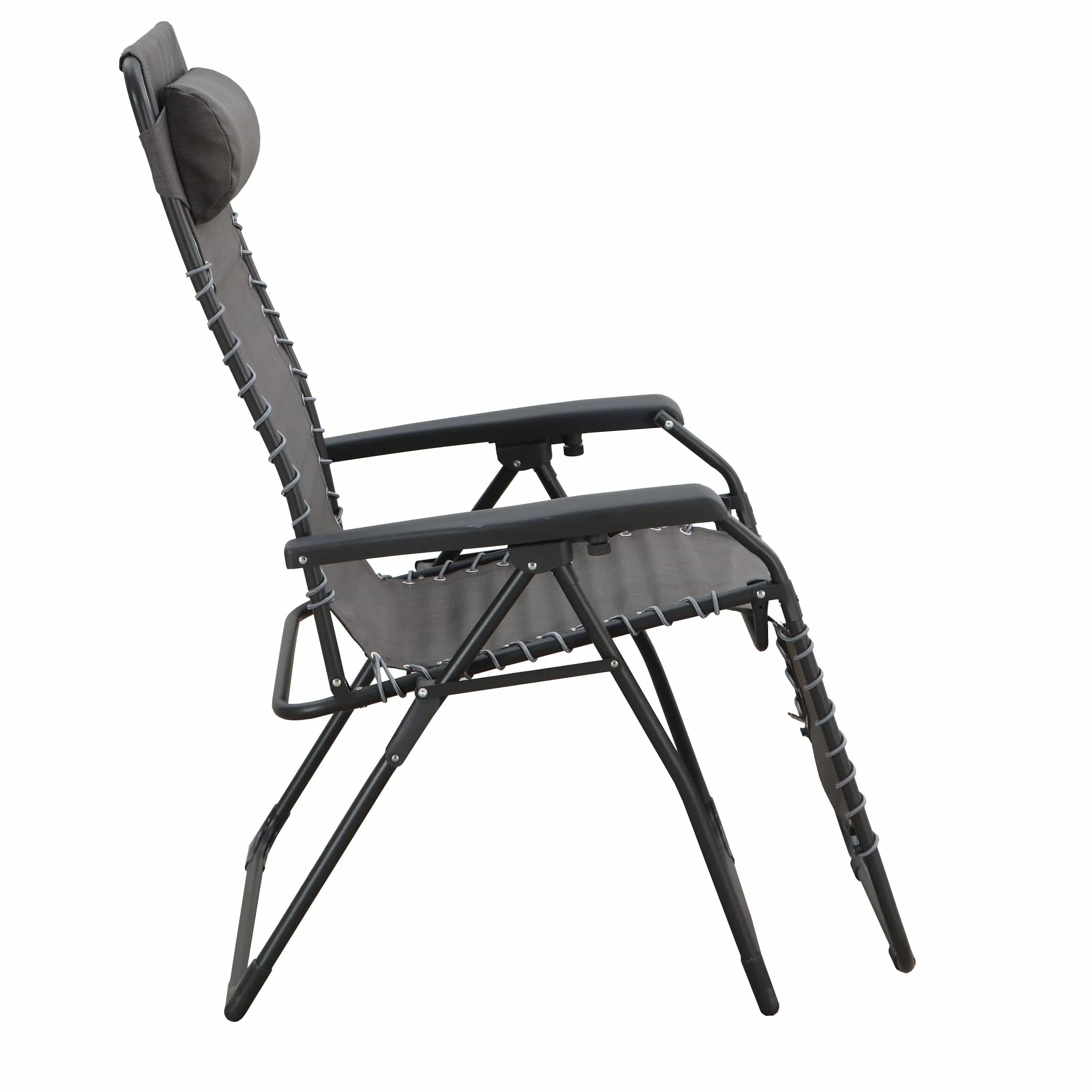 ZERO GRAVITY STEEL-TEXT MULTIPOSITION RELAX CHAIR WITH LIGHT GRAY CUSHIONThe ZERO GRAVITY relaxation chair can be easily placed on a small patio, in a garden or on a terrace, with multiple positions for the backrest and legs. Easy to fold and transport, the frame is made of powder-coated steel.