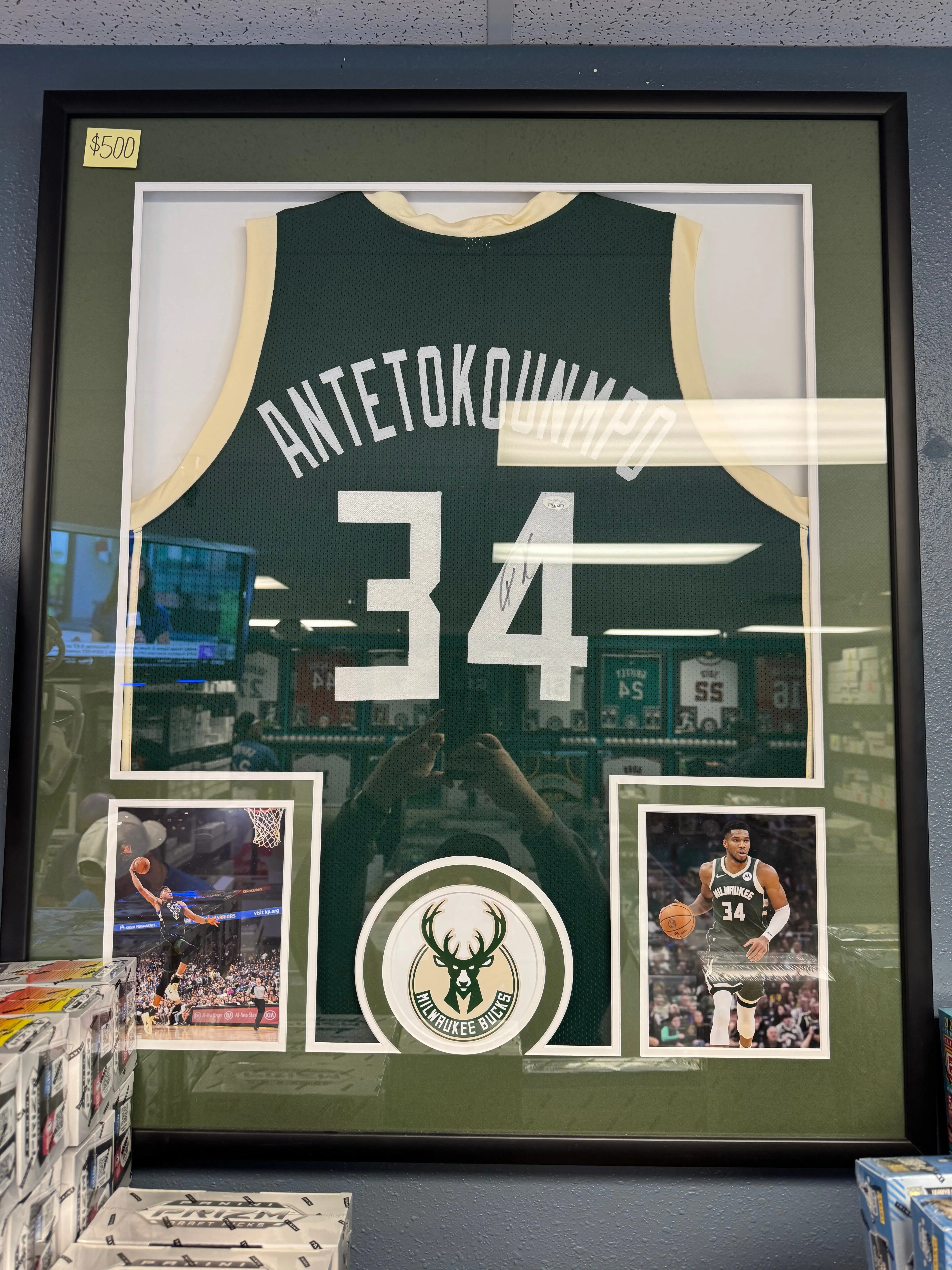 Giannis Antetokounmpo #34 (Milwaukee) Autographed Jersey Framed w/ JSA COA