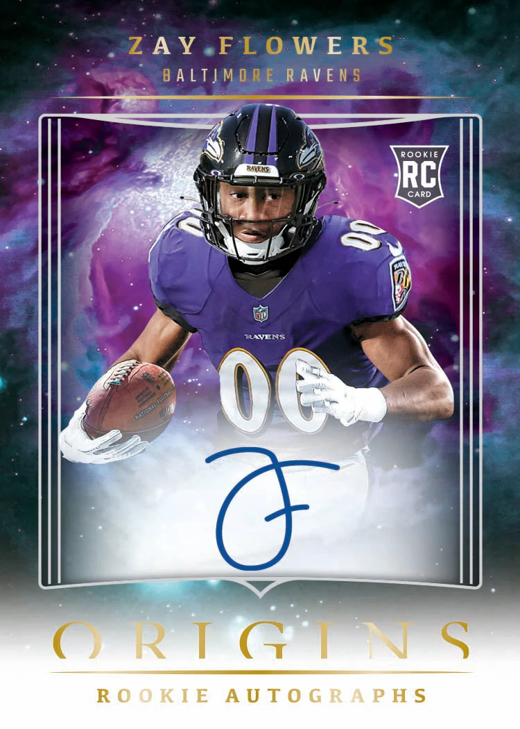 The vibrant, art-inspired juggernaut that is Origins Football returns for 2023 with some of the season's first NFL Rookie Cards, on-card rookie autographs and colorful inserts featuring the game's top stars and legends.